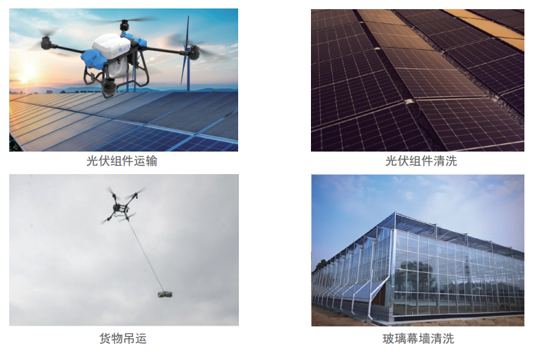 ![]() 应用场景 光伏清洁无人机能够完美适配多元化高空清洁作业场景包括: